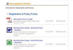 | Document management using our web-based interface is simple. We allow you to upload Ms-Word, PDFs, Excel Spread sheets and any other document format you wish to offer your users for download. Each document can then be related to any section on your website for easy access. This means that documents can be attached to news items, events and so on. |