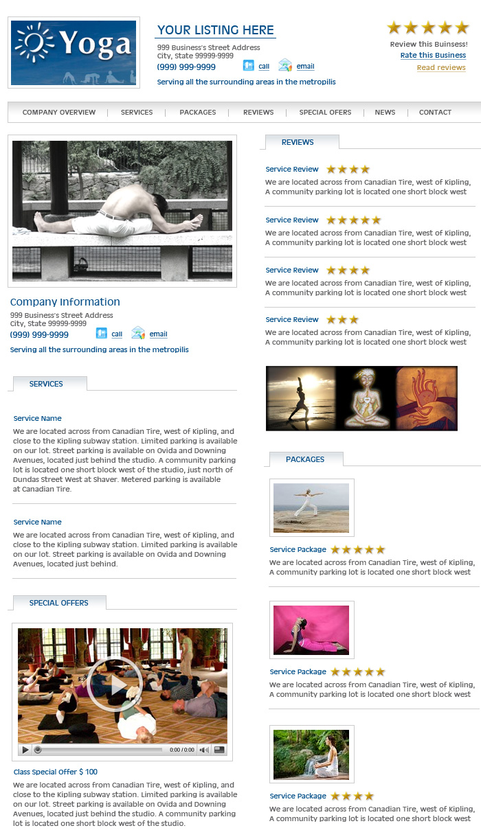 There are many directories on the internet that offer you details listing for your products and services, but unfortunately the features that are available are just not enough to showcase everything that's needed. The listings that are available on our directories will allow you to truly showcase your business. Instead of one page layout with minimal features, you will have a listing with a structure of a mini-site, where you will have an overview page, plus addition pages, in navigation format, to individually showcase additional items you are trying to market. (Pages include: Overview, Products, Services, Specials, News & Events, Contact ) |
